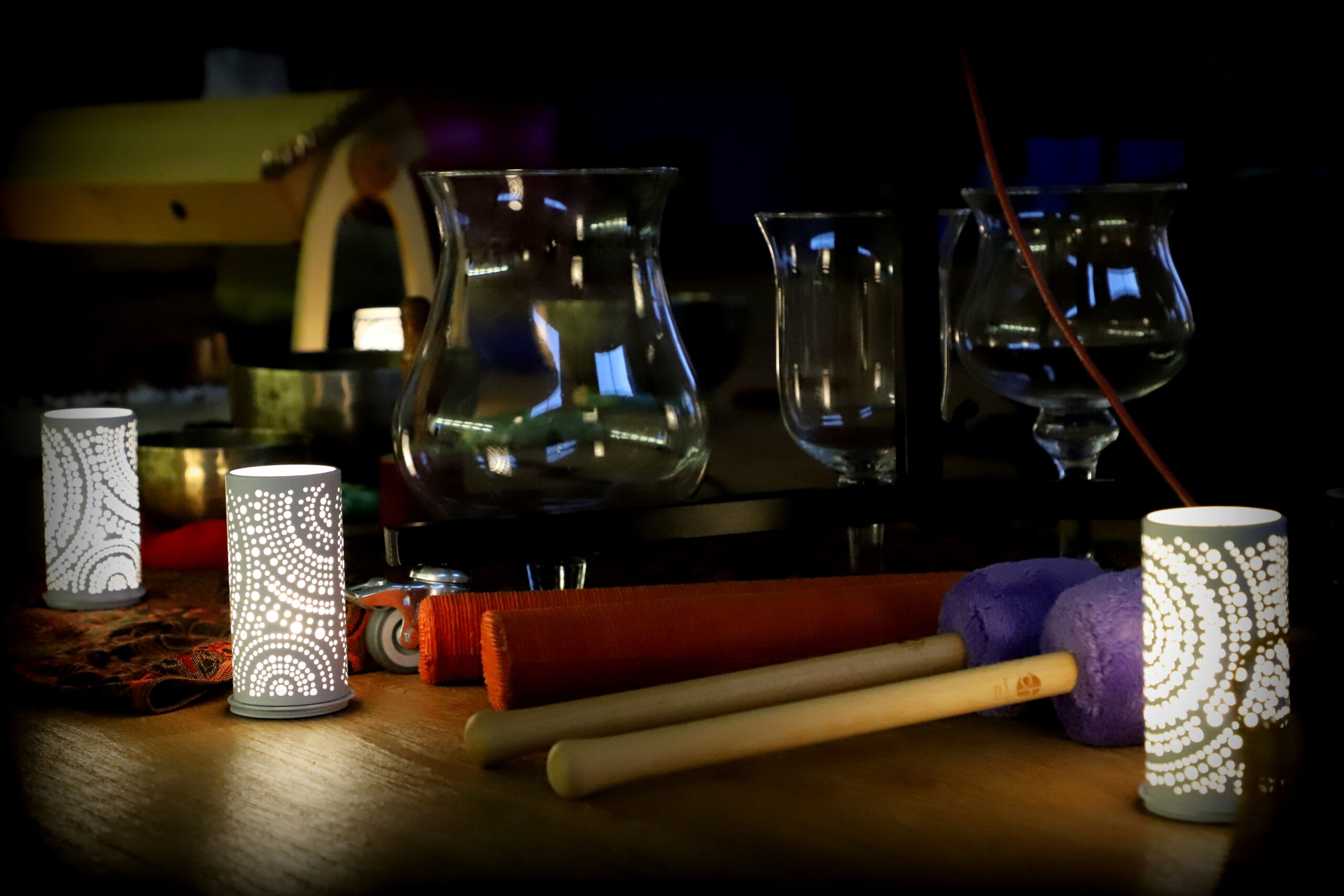 Mit Hilfe von Gongs, Klangschalen, Schamanen Trommel, Monochord, diversen anderen Klanginstrumenten und dem puren Klang der Stimme machen wir gemeinsam eine Klangreise in die eigene „Stille“.Die Frequenzen und Schwingungen die entstehen können Verspannungen und Blockaden lösen und die Energie im Körper wieder frei fließen lassen.Gehirnwellen verlangsamen und werden synchronisiert, was sich positiv auf unser Nervensystem auswirkt.Selbstheilungskräfte können aktiviert werden, wir finden wieder zu unserer inneren Kraft und können tiefen inneren Frieden erfahren.„Die wahre Stille ist nicht ohne Klang, aber ohne Gedanken“.